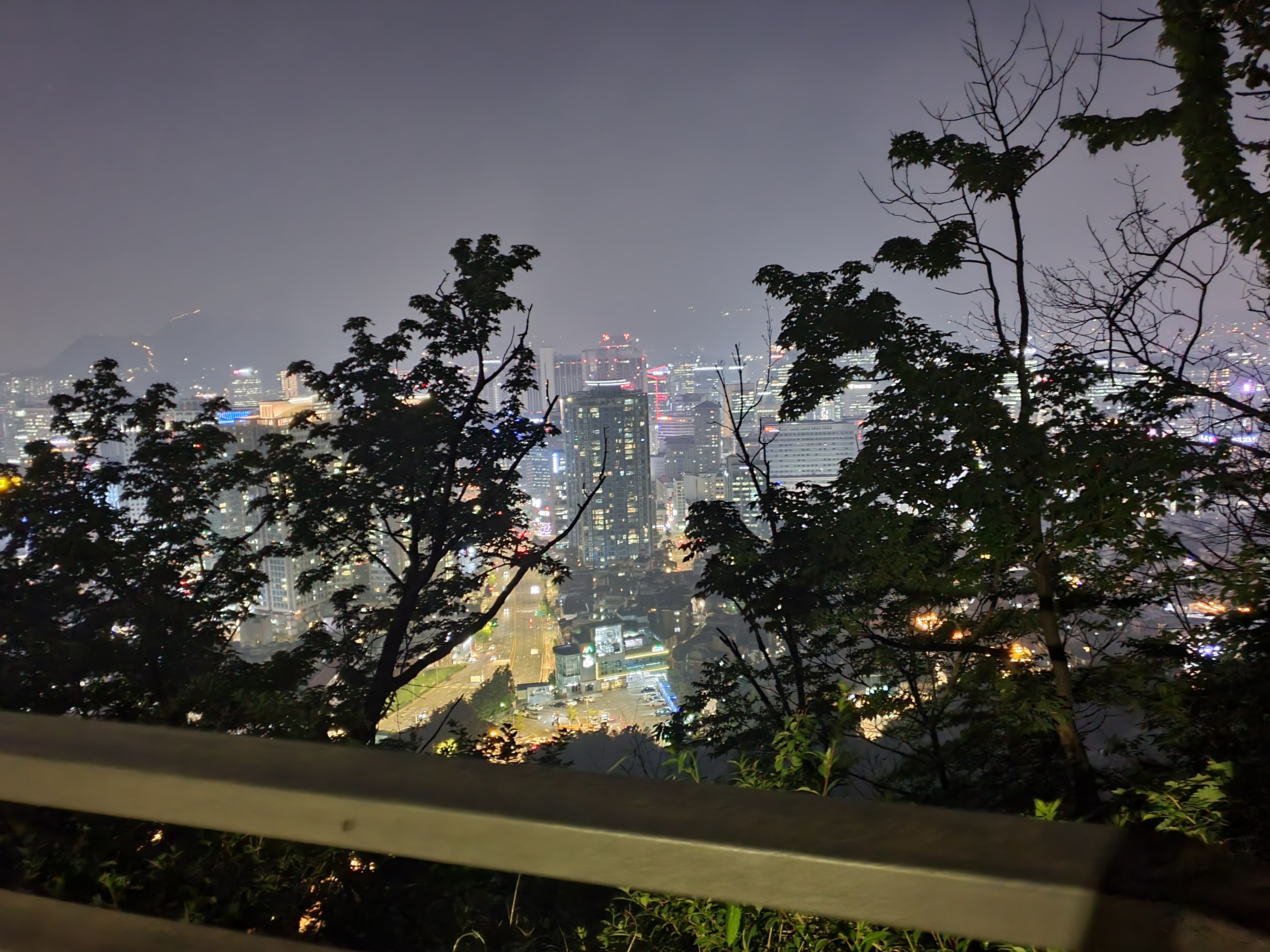 드디어 정상 도착! 생각보다 사람은 많지 않고 야경이 보인다. 안개가 끼어서 약간 흐릿하지만 역시 야경은 옳다.