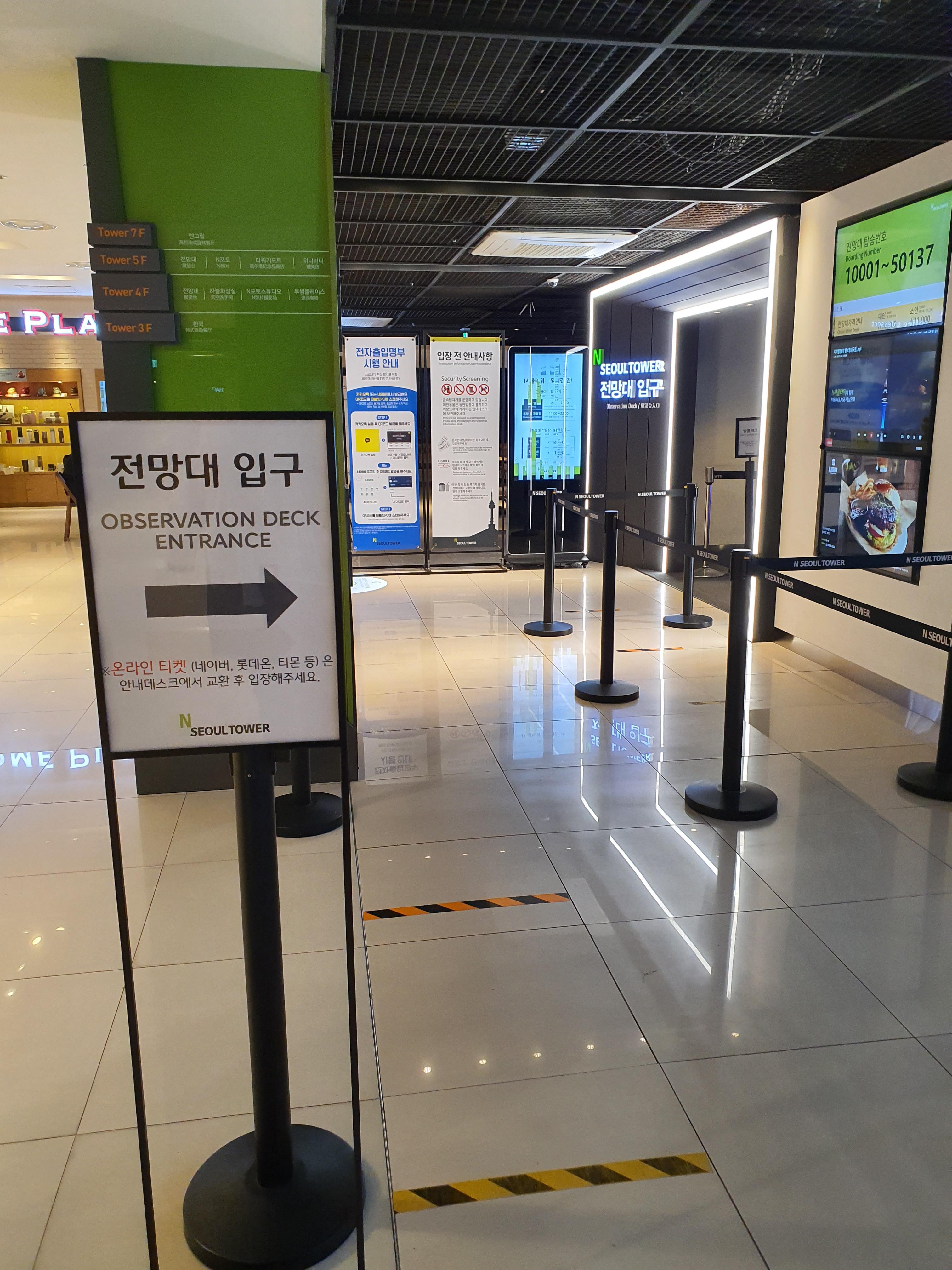 1층의 티켓 부스에서는 전망대 티켓 발권이 안된다. 그러니 5층으로 가면 된다.