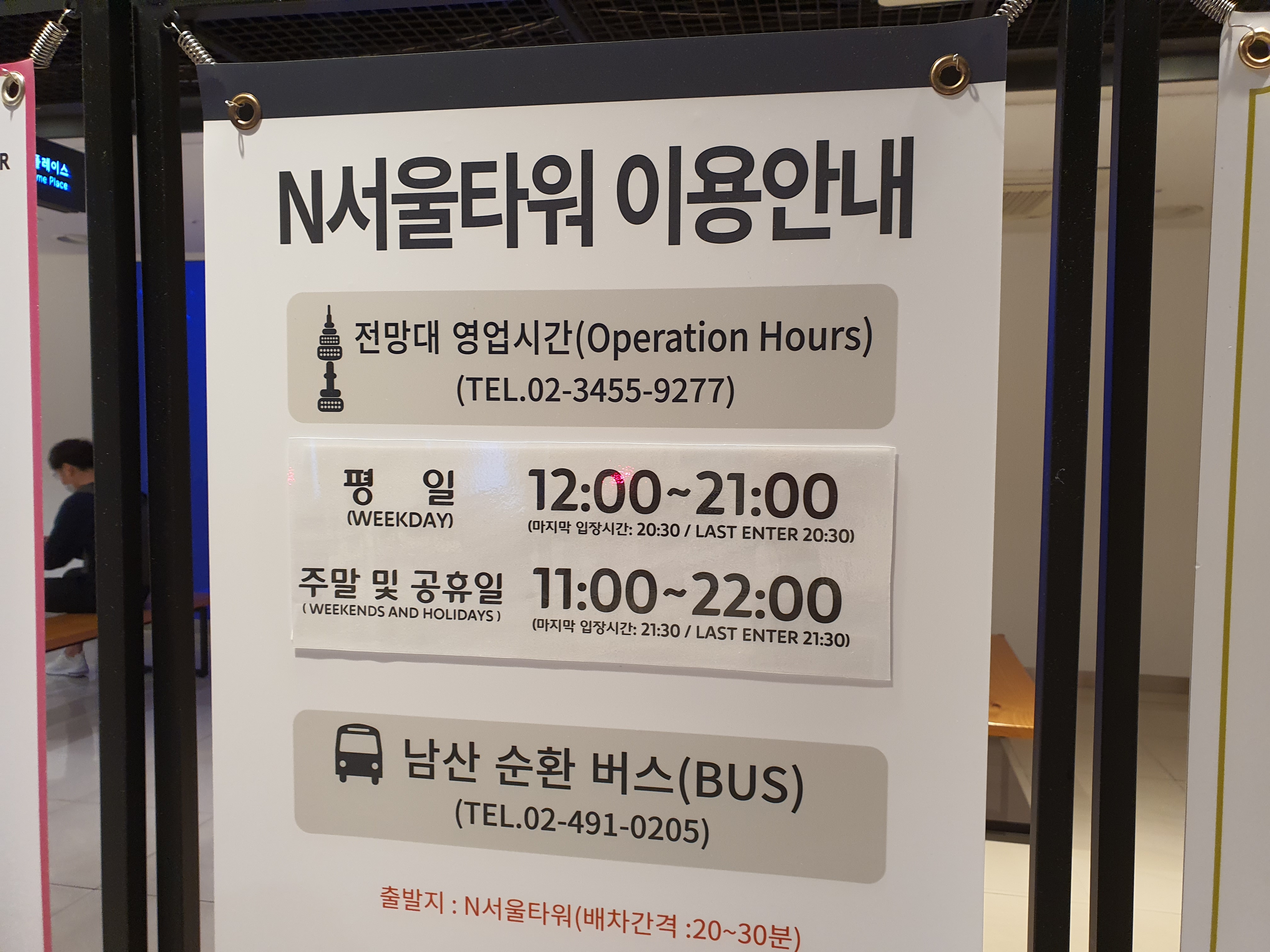 요새는 코로나 때문에 남산타워 N서울타워는 영업시간이 위와 같다.