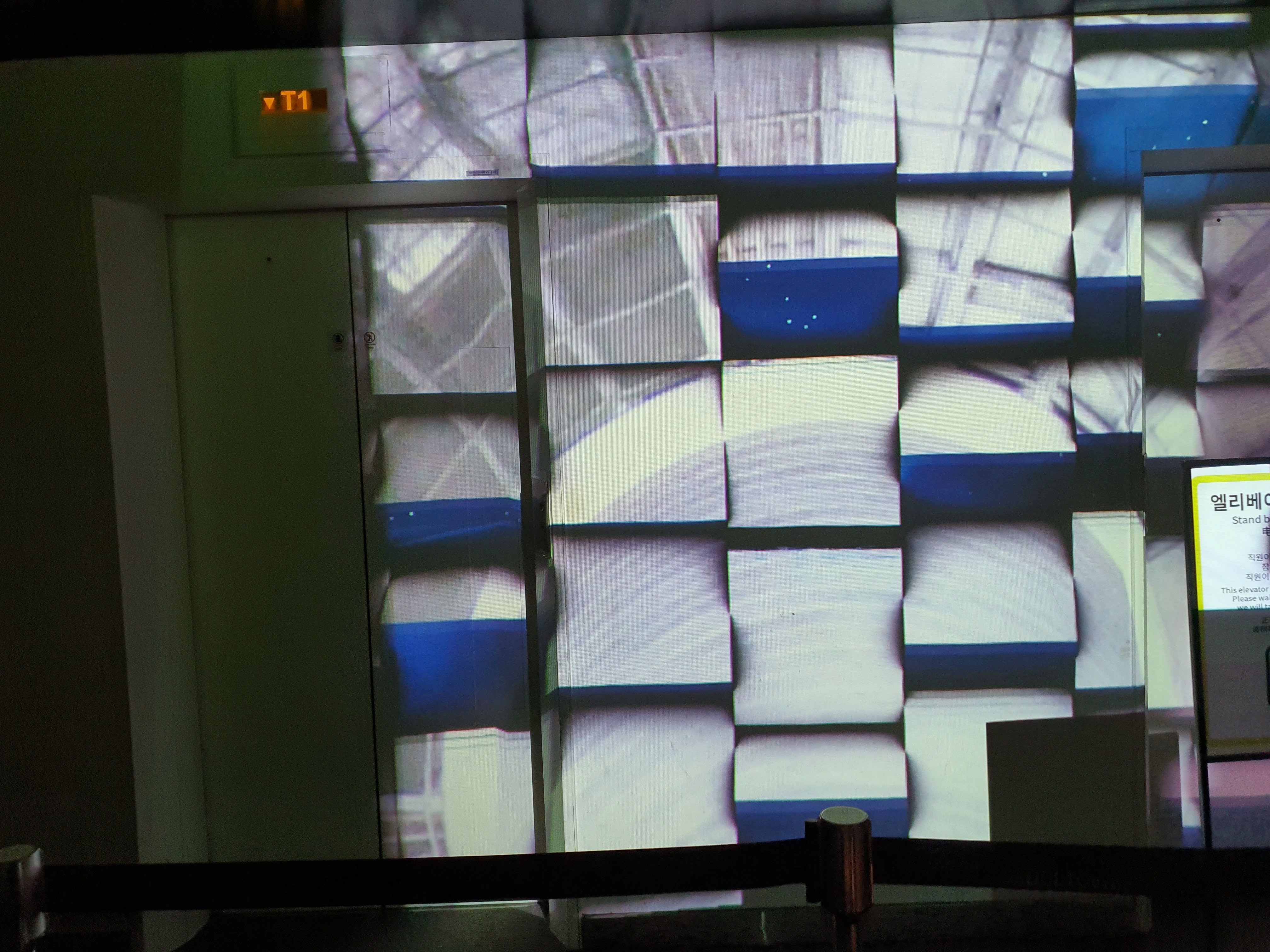 원래 이랬는지 모르겠지만 롯데타워 전망대 처럼 엘레베이터 상단에 영상이 틀어져있다.