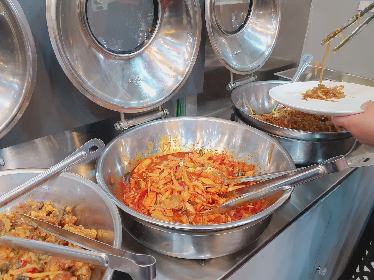 튀긴 군만두와 깐풍기. 깐풍기가 생각보다 실해서 놀랐다. 뷔페라는 편견때문인지 약간 마른 느낌을 생각했는데, 닭고기를 아끼지 않고 크게 썰어서 튀긴 것 같았다. 음식 리필도 계속 해주셔서 운이 좋으면 바로 나온 따끈한 튀김을 먹을 수 있다. 갓 나왔을때 먹어봤는데 역시 중식은 바로 한 것이 제일 맛있다.