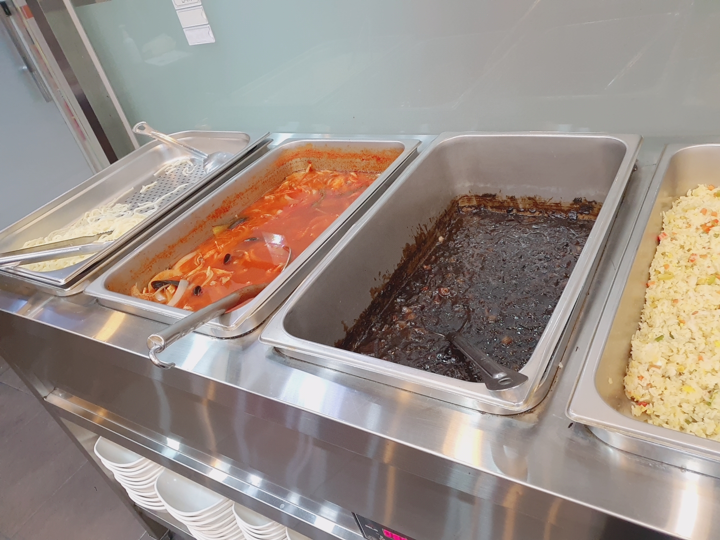 매일 기본으로 나온다는 짬뽕, 짜장면, 볶음밥. 면은 한번에 삶아서 가져다 놓기는 하는데 불지 말라고 조금씩 자주 계속 채워주셔서 쫄깃하게 먹을 수 있었다.